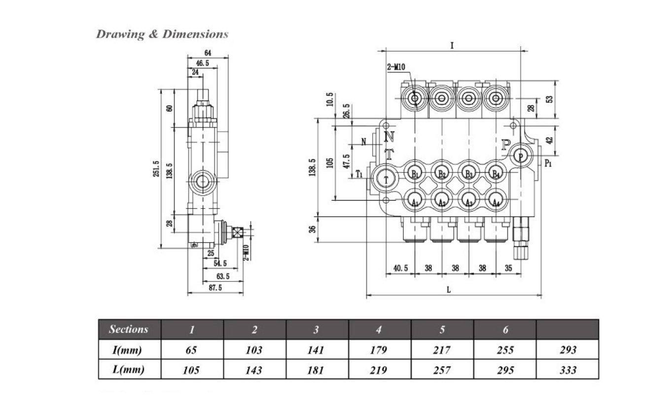- Конструкция распределителя: моноблок, 1–6 секций.